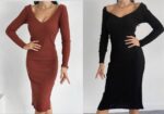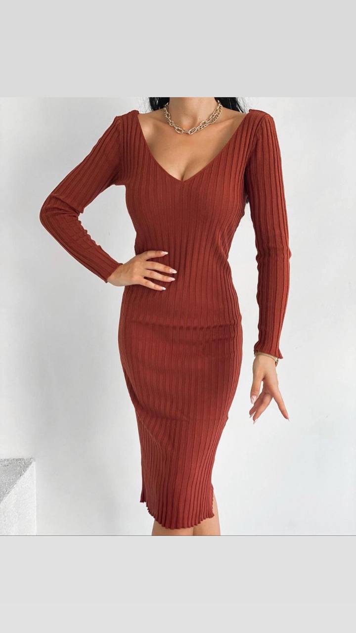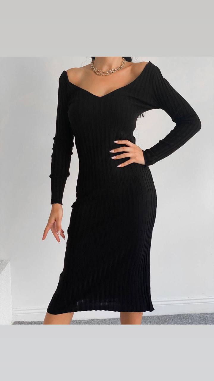 -15%NOU🌸 Rochie midi tricotată cu decolteu in anchior și mânecă lungă