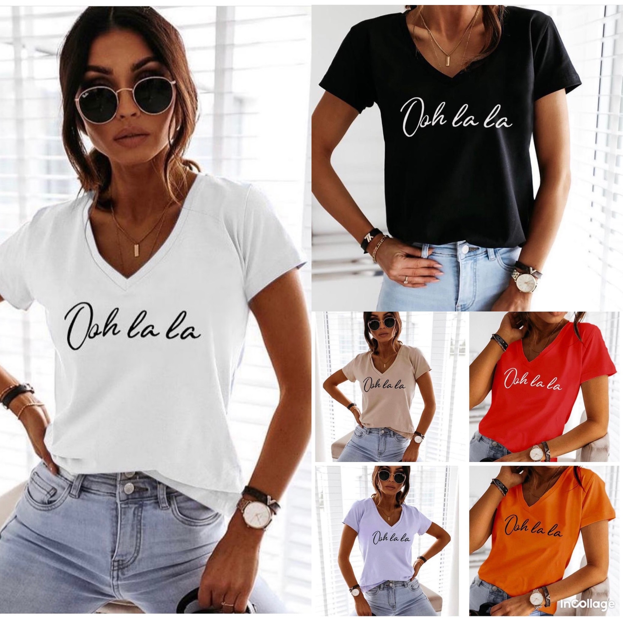Tricouri din bumbac in diverse culori, cu mânecă scurta și decolteu in V